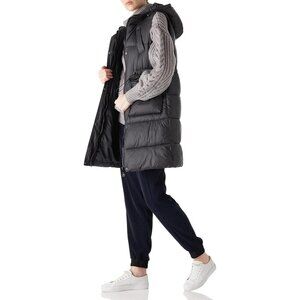 🆕 Women Black Puffer Vest Long Puffy Quilted Hooded Sleeveless Jacket Designed