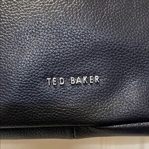 Sleek navy blue leather shoulder bag by Ted Baker. Features a minimalist design with silver accents. Perfect for everyday use.