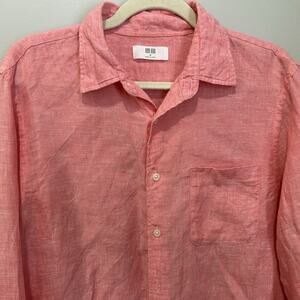 Uniqlo Linen Shirt Men Medium Collar Long Sleeve Button Preppy Pink Vacation