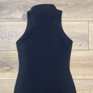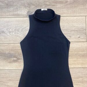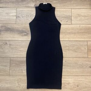 Sexy and sleek, sustainably made, high neck knit jersey midi dress by LAmade. The perfect longline little black dress lbd great for date night or going out. Halter style with a modest Racerback make this tight knee length dress a staple for the minimalist closet. Gently used, in excellent condition, Size Extra Small XS