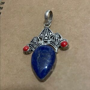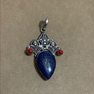 Sterling Silver Lapiz Lazuli and Coral Pendant, Gemstone and Sterling Silver!