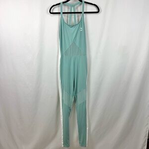 Puma Archive T7 sleeveless jumpsuit in Sage green / white side stripes Yoga Sz L