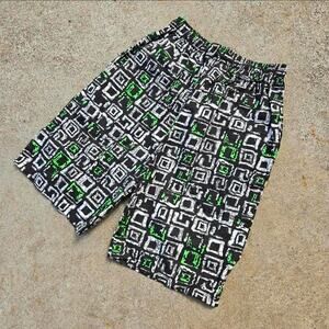 Vtg 80s 90s GECKO Abstract Geometric All Over Print Surf Shorts Youth Med USA