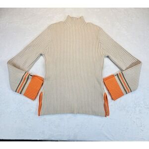 Anthropologie Mock Neck Tan Orange Sweater Womens Medium Bell Sleeve Ribbed Warm