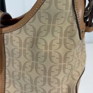 Fossil Monogram Canvas Shoulder Bag Tan Brown Y2K