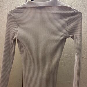 Stylish white long sleeve top. Features a ribbed texture. Ideal for versatile wear.
