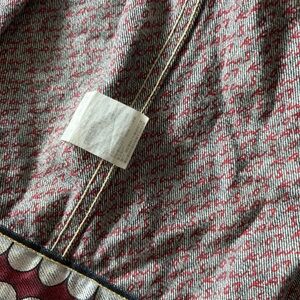 wrinkled, some fading, some of the print on the inside has rubbed off, loose threads