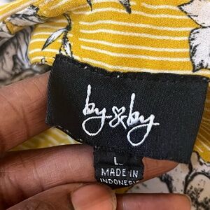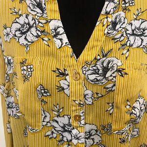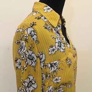By & By Mustard Yellow Floral Button Front Blouse Size L