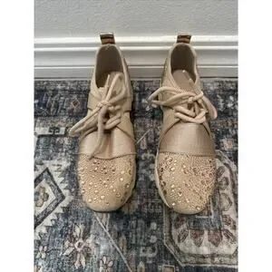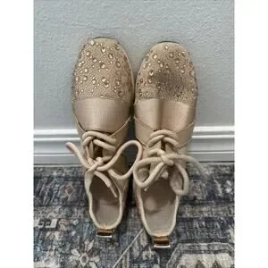 Carvela rose Gold bling studded sneakers size 37 Or Size 6.5 Women’s Beige