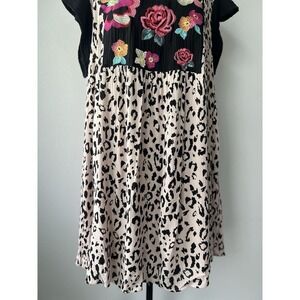 Savanna Jane Leopard Shift Dress Embroidered Cheetah Flowers Boho Plus Size 1X