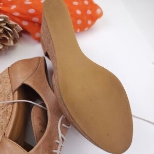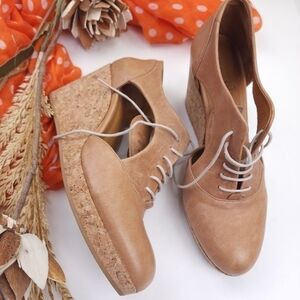Coclico Tan Nude Cork Leather Lace Front Wedges Size 6