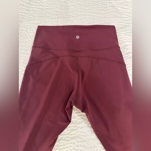Lululemon In Movement Burgundy Crop Everlux Redwood Leggings 10