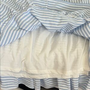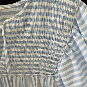 Adorable dress with light blue and white stripes. Features puff sleeves and tiered skirt. Ideal for casual outings. Worn only once!