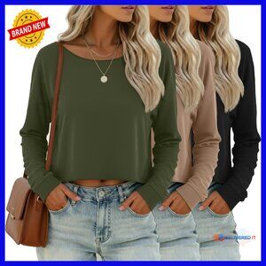 Brand new, no flaws, and ready to wear — this 3-pack of cropped long sleeve tops offers a comfortable, loose fit and versatile boat neck style perfect for casual days, workouts, or layering. The soft, stretchy fabric is lightweight and breathable for all-day ease.