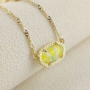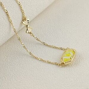 Elegant Kendra Scott necklace featuring a vibrant yellow stone set in a gold chain. Perfect for adding a pop of color to any outfit.
