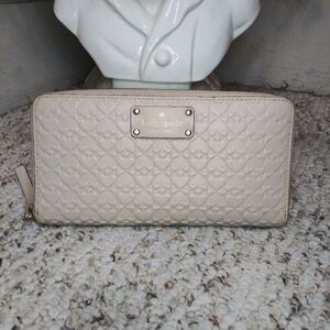 Kate Spade Cream Leather Three Dimensional Spade Patterned Zip Around Wallet