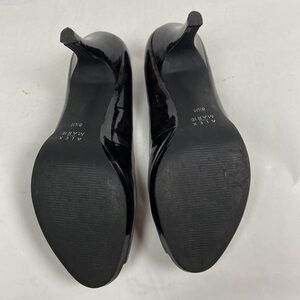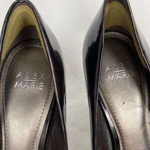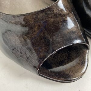 Excellent Condition Alex Marie Cashmere Pansy Grey Patent Leather Stiletto Peep Toe Heel Pumps