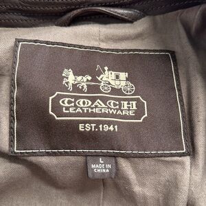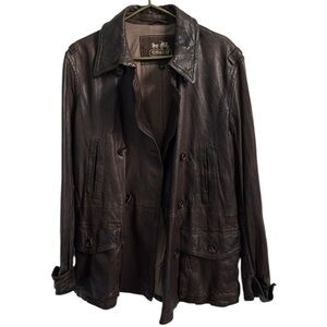 Coach Double Breasted Chocolate Brown Leather Pea Coat Size Large