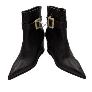 Sam Edelman Weslie Point Toe Wedge Embellished Buckle Ankle Boots Women's Size 9