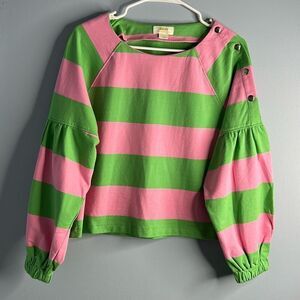 Anthropologie Maeve French Terry Sweatshirt Small Pink and Green Striped