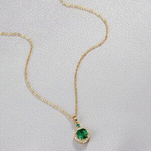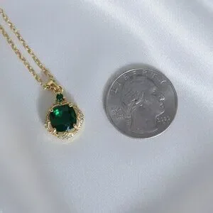2 Carat Simulated Emerald CZ Gold Tone Pendant Necklace NWOT