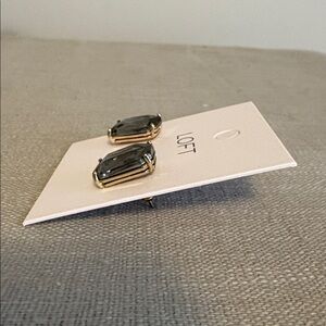 LOFT Dark Stone Stud Earrings Emerald Cut Gold Tone and Smokey Gray New