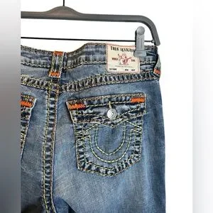 Women’s True Religion Y2K Orange Stitch Billie Mid Rise Straight Jeans Size 32