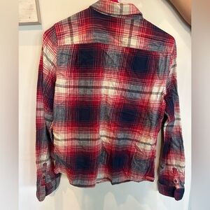 American Eagle Outfitters Red/Navy/Tan Plaid Casual Flannel Button Down Shirt-Size 8