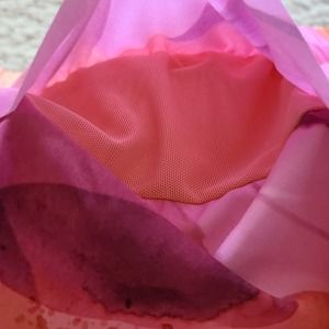 ATHLETA Mesh Racer Run Shorts 4” Pink Orange Watercolor Abstract Women's 2X