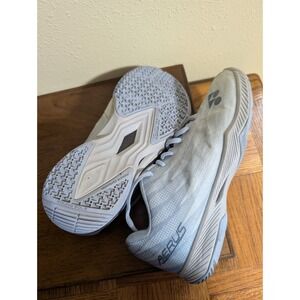 Good condition has some surface dirt. The Yonex Aerus Z2 Court Shoe is a unisex athletic sneaker designed for badminton players. It features the renowned Yonex brand, cushioned power cushion technology, and a stylish blue color. With a UK shoe size of 6 (men) or 8 (women), this shoe provides comfort and support for intense gameplay on the court. The Yonex Aerus Z2 is a reliable choice for athletes looking for high-quality footwear tailored for their sport.