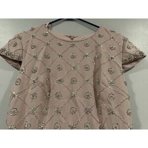 On sale is a Mac Duggal 2234 Pink Hand Embellished High Neck Midi Dress Sz 8. It is new with tags. Please be aware that due to the dress style, some minor sequins may be missing. I did not see any when looking the dress over.