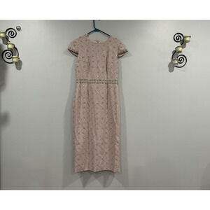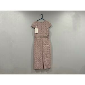 Mac Duggal 2234 Pink Hand Embellished High Neck Midi Dress Sz 8 NEW