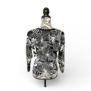 ALBERTO MAKALI Black and White Floral Blouse with Sequins