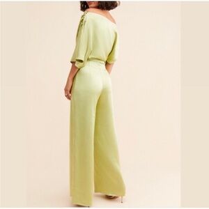 Elegant And Alluring, The Amari Jumpsuit Is Perfect For Any Special Occasion. Luxurious Satin Drapes The Wearer In A Luminous Sheen, That Flatters And Elongates The Silhouette. Draped Neckline, Worn Off The Shoulder, With Covered Buttons Along The Left Sleeve. Fitted Waist.