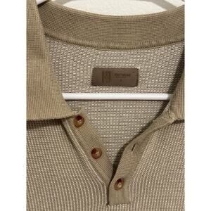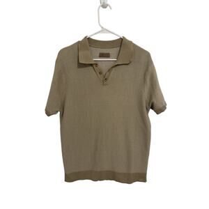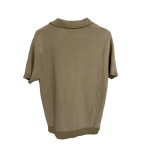 HB Knitwear Men's Large Khaki Short Sleeve Button Up V-Neck Pullover Sweater