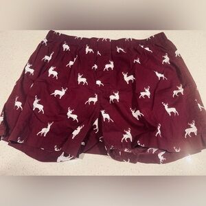 Charming set of J. Crew printed cotton boxers. Includes navy gingham, burgundy with white deer, and navy with green trees.