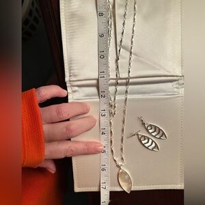 Stella & Dot Aurelia Mother of Pearl Drop Pendant long necklace and matching earrings. Versatile can wear either side.