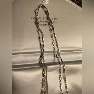Gorgeous silver tone necklace combines the look of two layers and a reversible pendant to display mother-of-pearl or geometric bohemian vibe