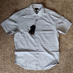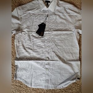 Good Man Brand, men's size medium stylish gray short sleeve button down shirt. NWT, Perfect for any occasion, this shirt offers comfort and a modern look.