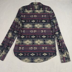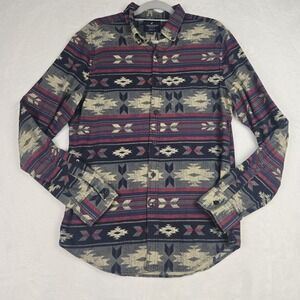 American Eagle Button Down Shirt Mens Medium Aztec Print Red Blue Classic Fit