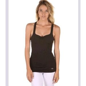 The NWT Mika Yoga Wear Linda Top in Blue is a stylish sleeveless tank top perfect for yoga, dance, and other activewear occasions. Made of comfortable polyester material and featuring a pullover closure, this top is versatile for all seasons and comes in a flattering size Large. With a trendy tie-dye pattern and aBasic style, this top from the athleisure-themed brand Mika Yoga Wear is a must-have for any active woman's wardrobe.