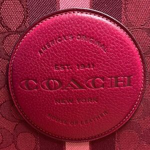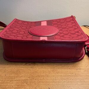 Elegant Coach crossbody with signature pattern. Rich red hue with stripe detail. Perfect for daily use. ALMOST New. USED twice. Reasonable offers will be considered.