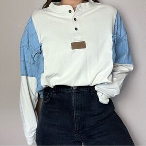 Wrangler Reworked Upcycled Denim Loose Baggy Western Relaxed Two Tone Shirt Top