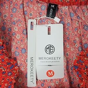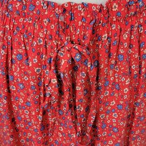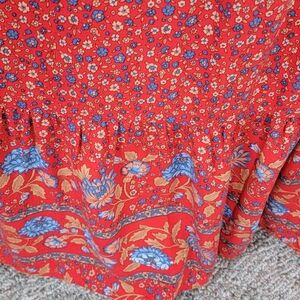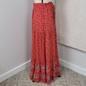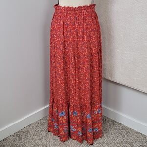 Meroketty Red Crimson Floral Boho Western Rayon Blend Tiered Maxi Skirt Sz M NEW