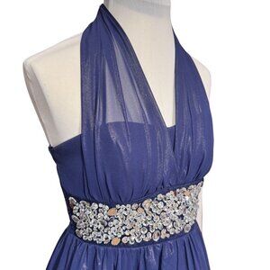 JODI KRISTOPHER Blue Rhinestone Halter Dress Juniors Size 3 Prom Cocktail Party
