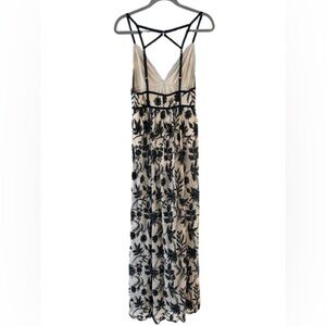 L’Atiste Black and Nude Embroidered Floral Sheer Maxi Dress Size Small