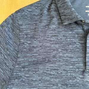 Cleveland Guardians Polo Shirt Men XL Majestic Cool Base Blue Baseball Digital. This dark blue short sleeve polo from Majestic Cool Base is perfect for a lover of the Cleveland Guardians baseball team. It is a men's extra large. It has an all over blue on blue digital camo print. The fabric contents are 100% polyester. The Cleveland Guardians symbol is on the chest. In excellent used condition. Measurements and condition shown in photos.