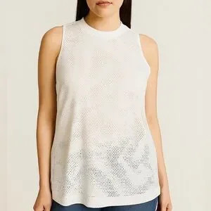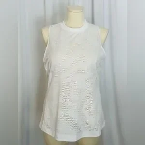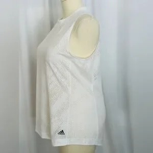 Adidas white perforated tank top, design with a breathable mesh fabric, it keeps you comfortable during workouts or casual outings.