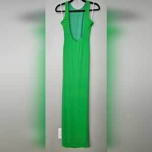 Lulus Karise Green Mesh Ruched Backless Maxi Dress, Size Small