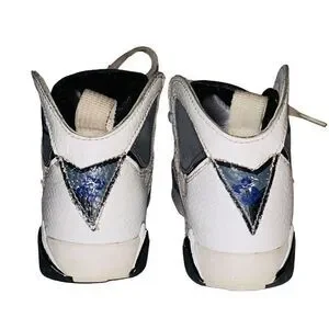 Elevate your kid's sneaker game with these Nike Air Jordan 7 Retro Boys shoes in size 11c. The shoes come in a stylish white, gray, and varsity purple color-way, and feature a leather upper with lace-up closure for the perfect fit. These athletic sneakers are perfect for your little boy's active lifestyle and are part of the iconic Air Jordan product line.